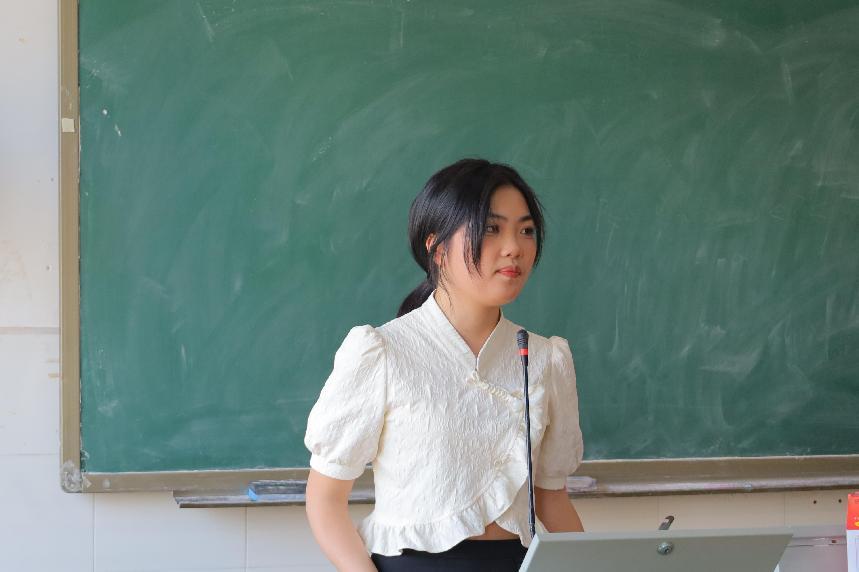 随后,周洋上台向大家分享她的考研心得。她在择校、备考规划、心态调整三个方面展开说明。她指出择校是考研的“第一粒扣子”,扣错了后面可能步步皆错。在备考期间需步步为营,有条不紊,对于专业课重点章节和薄弱环节,进行专项突破,还整理了错题集,时不时拿出来复习巩固。同时,在政治上紧跟热点高效提分,在英语上厚积薄发,稳扎稳打。此外,在备考期间保持积极也是极其重要的。