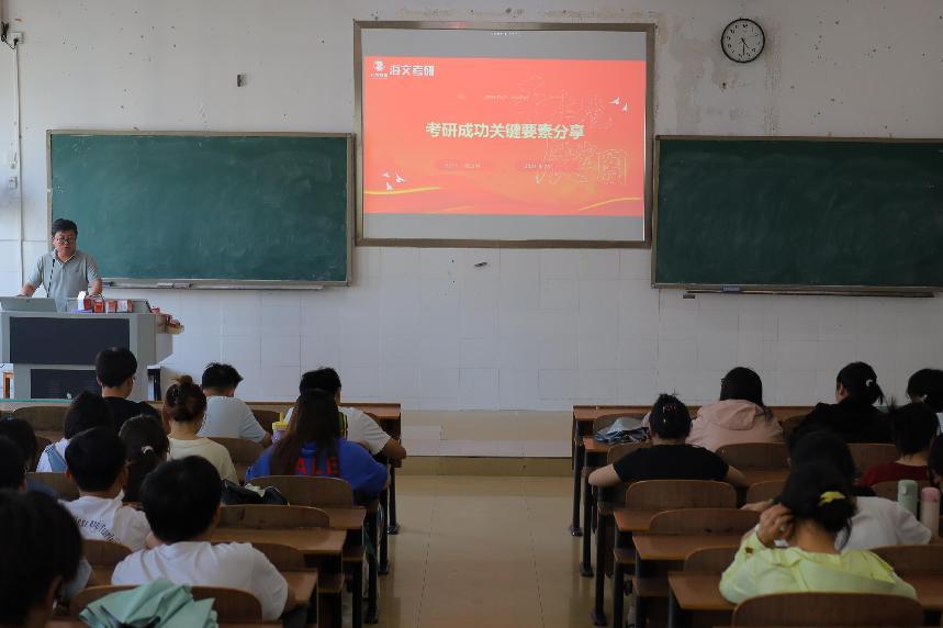 为帮助我院学子明确考研方向、掌握高效备考策略,我院于5月12日在九章楼505教室开展考研经验分享会。本次分享会邀请到了海文考研规划主讲老师国玉明以及优秀考研学生代表2107周洋和2107谢豆担任主讲,吸引了百余名有考研意向的学生参与。
