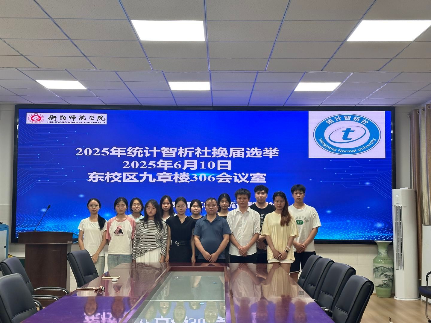 2025年6月10日19:30,衡阳师范学院统计智析社在九章楼306会议室举行年度换届选举会议。统计智析社指导老师曹灿博士、首任会长宋一乐、理事会成员和学校监察部门代表共同参加本次会议。会议回顾了社团年度工作成果,选举出新一届会长,并规划了未来发展方向。
