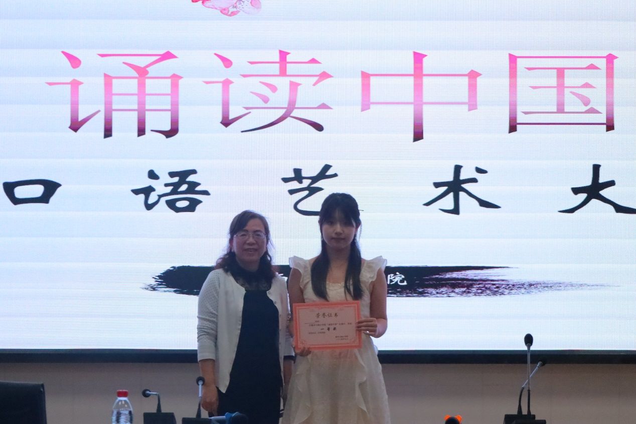 及至比赛尾声,我院党总支书记彭巧燕老师深情献诵《中文之美》,与在场的全体师生共同品味中文的独特魅力。在诵读过程中,彭书记展现了她深厚的语言功底和感染力。她时而慷慨激昂,将文字中的激情与力量传递至每一位听众;时而低沉悠扬,让每一个字、每一个词都仿佛拥有了生命和灵魂。
