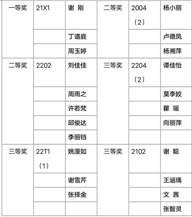获奖名单