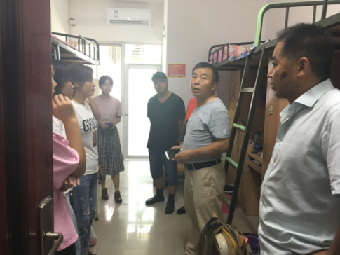 9月20日下午5点,数学与统计学院党总支书记邹梅山,党总支副书记谭全球以及辅导员刘琴、周长恩老师在学生会工作人员的陪同下走访2018级新生,对新生表示慰问并给予鼓励和支持,送至学院领导及老师的关怀。