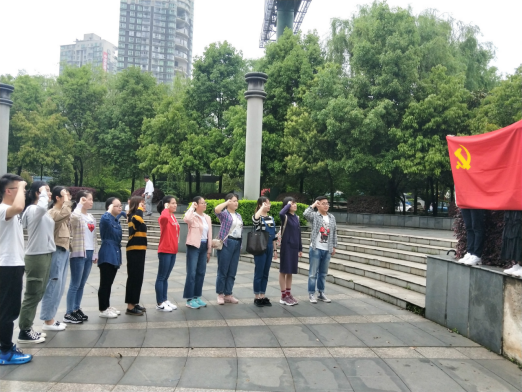 庄严的湘南学联纪念馆里,学生党员们在革命先辈的珍贵照片和历史文献资料前驻足。这里的每一张照片都充满了历史的色彩,每一个文物都留下了历史的痕迹,学生党员们怀着敬畏之心仔细端详着每一件展品,回忆起革命事业的艰难历程,置身于当年湘南学子抛洒青春和和热血的光辉岁月中,感悟革命先辈们艰苦奋斗、不屈不挠的革命精神。随后,全体学生党员步行至游园区,拿出党旗,面对党旗,重温了入党誓词,在铿锵有力的宣誓中更加坚定为党的事业奋斗终生的勇气和决心。