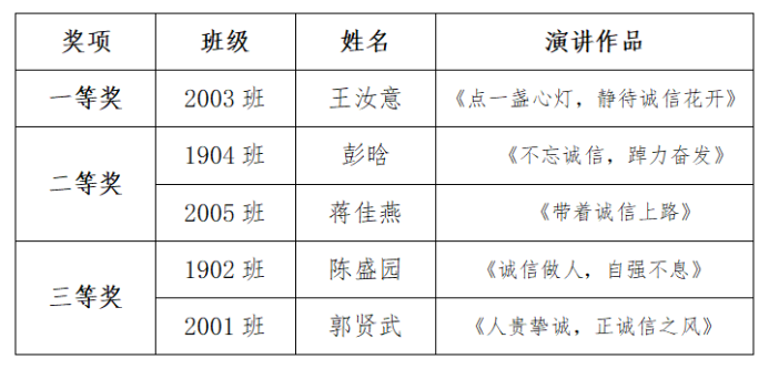此次活动的举办不仅提高了我院学生的演讲能力,丰富了学生的课余生活,还增强了同学们的道德认识,培养了学生诚实守信、懂得感恩、自立自强的良好品质。