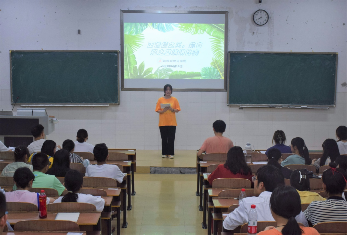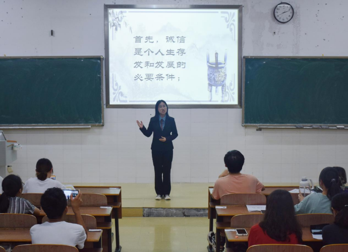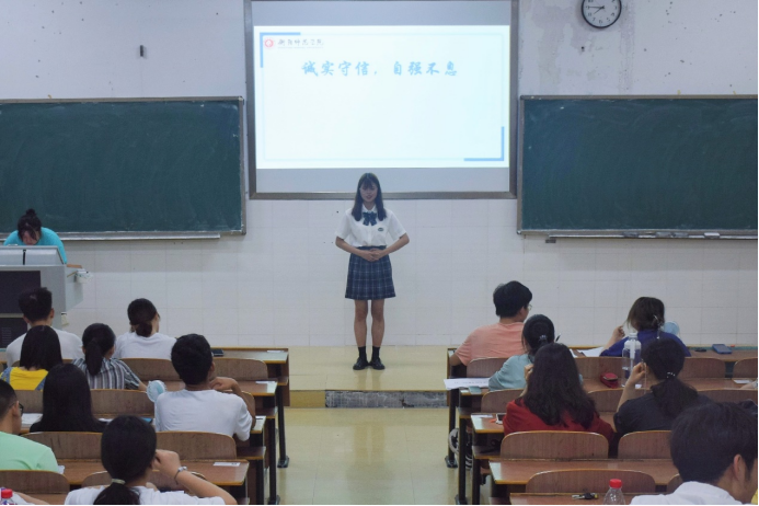 为增强当代大学生的诚信意识和责任意识,丰富诚信教育主题活动,6月14日晚7点半,我院于理科1楼505教室举办了“正诚信之风,筑自强之基”主题演讲比赛,辅导员贺妮老师出席此次活动。