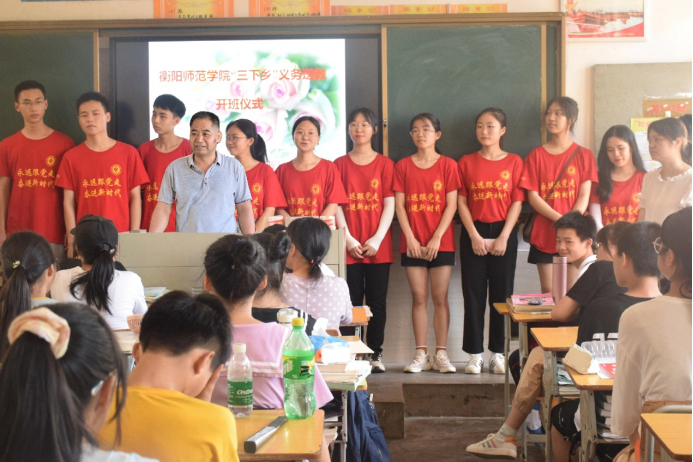 为响应大学生“三下乡”社会实践的号召,在茶山坳镇一环东路第二中学曾春锋校长的大力支持和帮助与我院党总支副书记谭全球的带领下,我院“微光·耀梦”教育帮扶实践团于7月9日上午抵达衡阳市珠晖区第二中学,开展以“永远跟党走,青春敢担当”为主题的暑期“三下乡社会实践活动