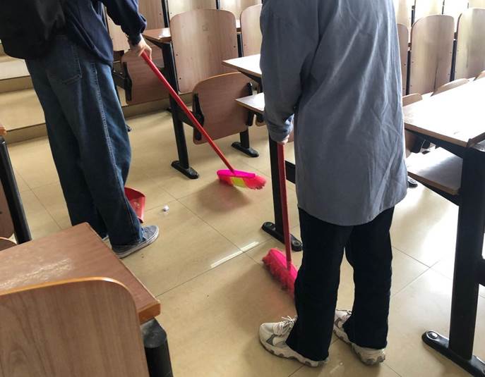 活动开始,在我院各班活动负责人的组织下,同学们开始共同清扫校园中每一块土地。他们以小组为单位,在学校的操场、草地、湖边等地方捡拾垃圾,进行垃圾分类再统一投放于垃圾箱中,致力于携手打造文明校园。接着,各位同学对理科楼(1)的每一间教室进行擦拭黑板、桌椅等清洁,努力改善我院学子学习环境。此外,每位同学在寝室长的带领下在寝室内开展全方面卫生大扫除,争取成为文明寝室。清扫结束后,各班举行了雷锋节分享交流会,大家热情分享,积极讨论,总结优势与不足,在整个校园焕然一新的同时,雷锋精神也深深烙印于每个人的心中。