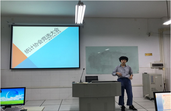 大会开始,由统计学2014级班长陈鹤同学担任主持人并致开场词,宣布“统计协会”第一届学生干部竞选大会正式开始。黄海午老师简单介绍了“统计协会”成立的目的和意义,对协会未来的主要工作设想提出了中肯的建议,并鼓励统计学专业同学积极参与“统计协会”的日常工作和活动安排。随后,报名参加“统计协会”第一届学生干部竞选的同学逐一上台演讲,各位评委对竞选同学提出相关问题并严格按照相关标准进行打分和确定名单。