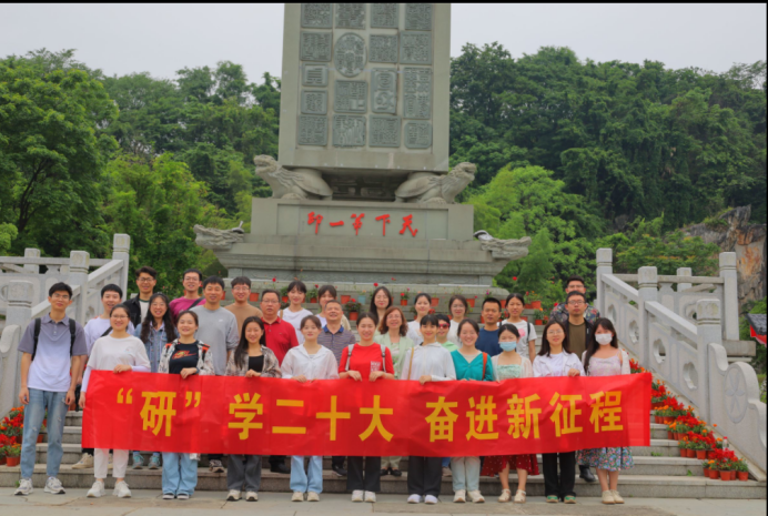 为深入学习贯彻党的二十大精神,切实学习和传承中华传统文化,增强研究生的爱国主义情怀,5月14日,衡阳师范学院17c起草红桃全体研究生及导师,走进有着浓郁传统“印”文化氛围的常宁印山,开启“研”学二十大,奋进新征程”的传统“印”文化研学之旅。