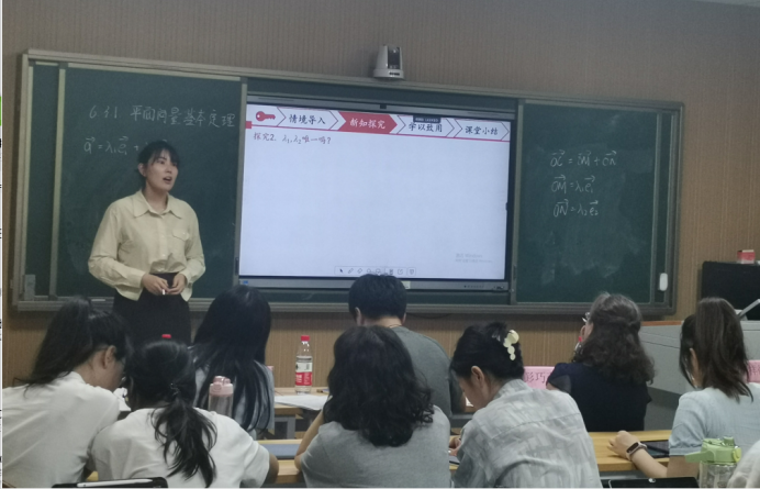 经初赛遴选出来的10位选手在开场前通过抽签的方式确定了本次比赛的出场顺序和需要设计的课题,每位参赛选手需要在两个小时内完成课题的教学设计和课件制作。在模拟授课环节,参赛选手准备充分,自制教具、学具,教学过程设计合理,语言表达准确生动,教学方法新颖独特,整个过程洋溢着积极向上、勇攀高峰的气息。评委们从参赛选手的口语表达、教态教法、重难点把握、信息化教学技能、板书设计等方面综合考量并进行打分。