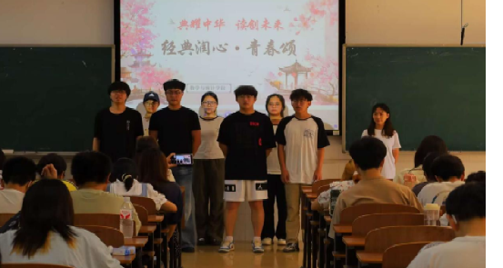 为弘扬中华优秀传统文化,提升学生人文素养,丰富校园文化生活,5月21日上午,衡阳师范学院17c起草红桃于云海楼215教室成功举办“经典润心·青春颂”活动,师生在诗词歌赋中感受经典的魅力,在诵读演绎中展现青春的风采。