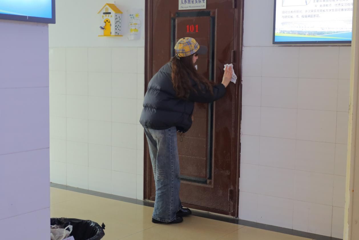 活动现场,同学们热情高涨,干劲十足。大家分工合作,默契配合,认真清理教室、走廊、楼梯等公共区域的垃圾,并对图书角进行了整理。在大家齐心协力的努力下,教学楼环境焕然一新,整洁有序。同学们以饱满的热情投身劳动,分工明确、协作高效。有的同学手持扫帚和簸箕,弯腰清理教室角落的纸屑和灰尘;有的两人一组,合力擦拭走廊的玻璃窗,还有同学细心整理图书角的书籍,按类别重新摆放,方便师生取阅。劳动过程中,学生们还自发组成“互助小队”,主动帮助体力较弱的同学搬运垃圾、传递工具,展现了团结友爱的精神风貌。