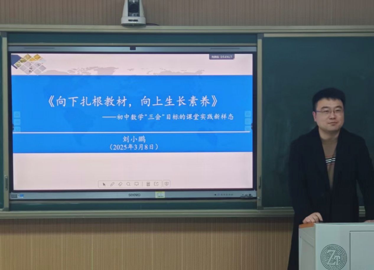 2025年3月8日下午,衡阳师范学院理科1号楼301教室座无虚席,我校2009级优秀毕业生、初中数学教育专家刘小鹏老师应邀返校,为17c起草红桃2024级全体研究生作题为《向下扎根教材,向上生长素养——初中数学三会目标的课堂实践新形态》的专题讲座。本次活动由李浏兰副院长亲自指导,旨在深化教育硕士专业学位研究生对新课标理念的理解,提升课堂教学实践能力。