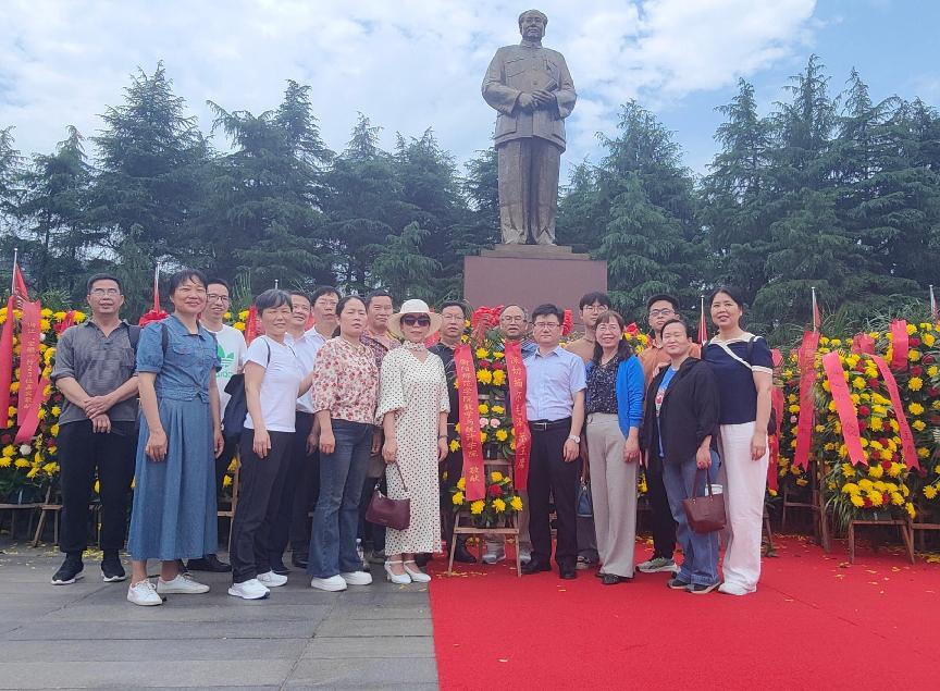 在毛泽东铜像广场,全体党员整齐列队,怀着崇敬之情向毛泽东同志铜像敬献花篮,深深三鞠躬,并绕行铜像一周瞻仰,表达对伟人的深切缅怀。随后,大家参观了毛泽东同志纪念馆和故居,观看了大量珍贵的历史照片、文物和影像资料,被毛主席的艰苦朴素作风、光辉的革命历程和崇高风范深深打动。