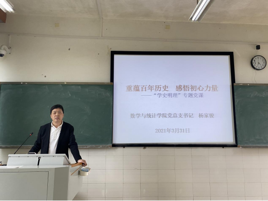 为深入学习贯彻习近平总书记在党史学习教育动员大会上的重要讲话、落实学校党史学习教育部署安排、迅速推动我院党史学习教育抓实落地,3月31日下午,我院党总支书记杨家骏在理科1楼421教室讲授党史学习教育“学史明理”专题党课。学院党政班子、全体教职员工、学生党员等100余人参加学习。