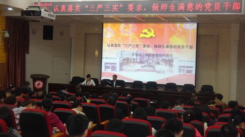 4月10日晚,副院长聂东明以《认真落实“三严三实”要求,做师生满意的党员干部》为题,在外语楼北311教室为他所分管职能部门和联系的系部上了一堂精彩、生动的党课。会议由计算机科学系党总支书记曾兰兰主持。